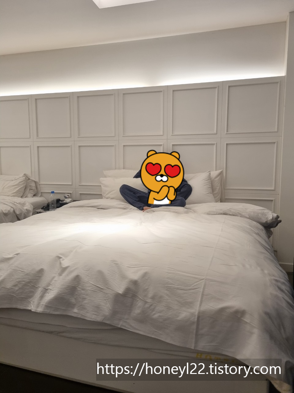 더블 침대가 2개 들어간 구성이라서 굉장히 넓었답니다. 이렇게 침대가 클 경우 다른 공간들이 협소하기 마련인데 이곳은 거실 같은 역할을 하는 공간이 넓고 욕실도 넓어서 만족스러웠어요.