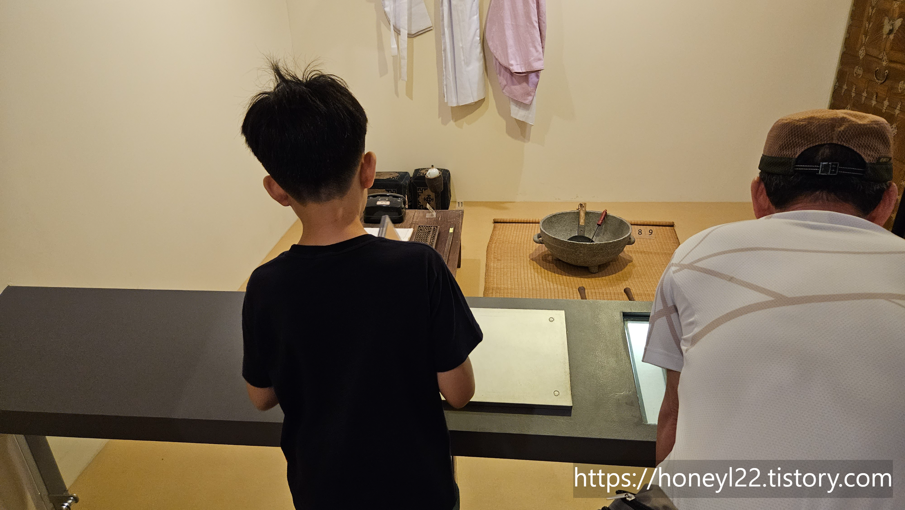 2층에는 이곳의 거주지와 좀 더 익숙한 전시물들을 볼 수 있는 집과 농경생활을 주제로 한 공간이 있었습니다. 어촌은 볼 기회가 많지 않지만 농경문화를 기반으로 발달한 우리나라에서 어느 박물관을 가더라도 농경생활과 관련된 옛것들은 접할 기회가 많죠. 아이들은 익숙하게 3 전시실을 구경했어요. 깔끔하게 옛 주거지와 생활공간을 꾸며두어서 편안하게 관람할 수 있었습니다.