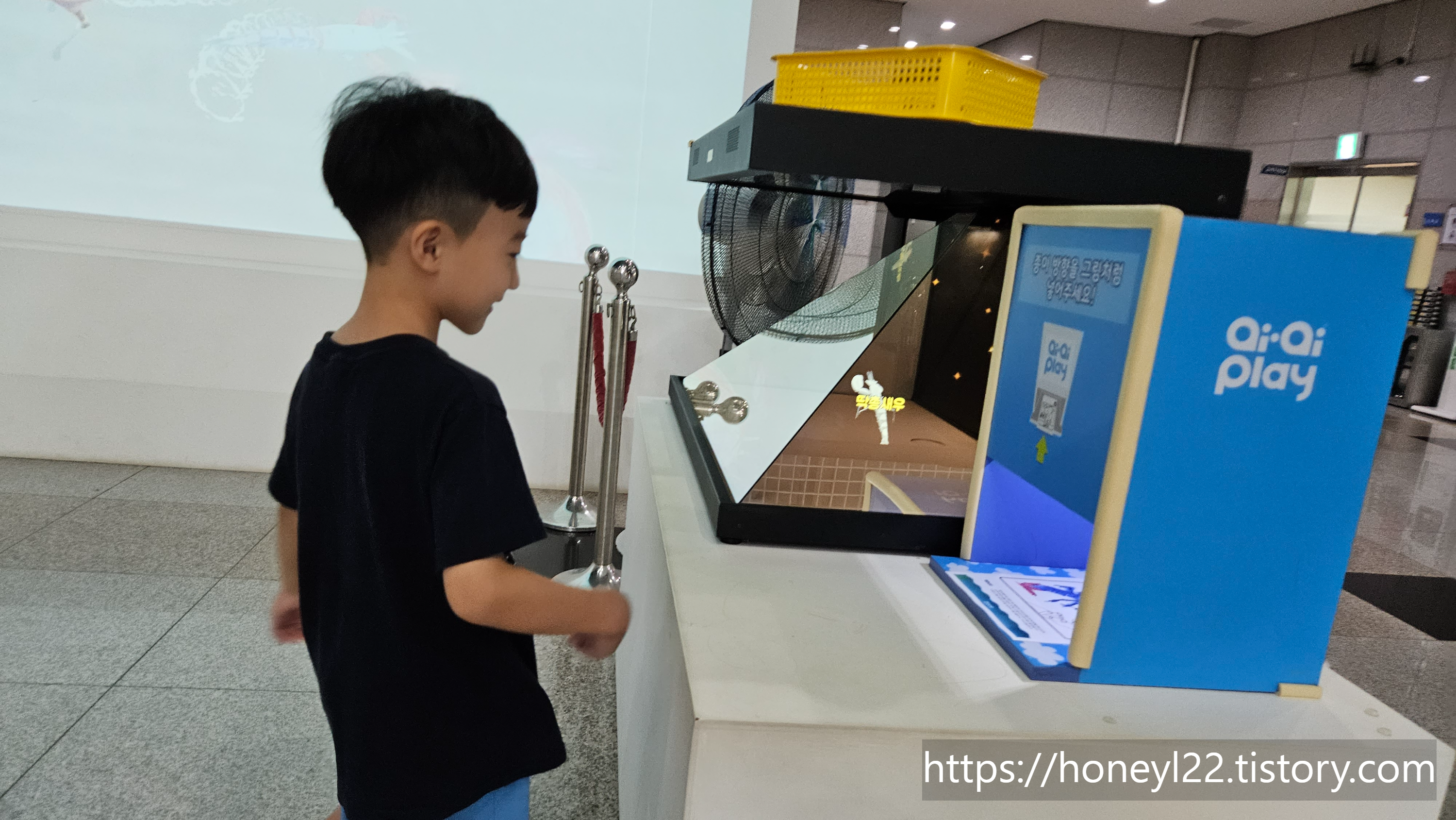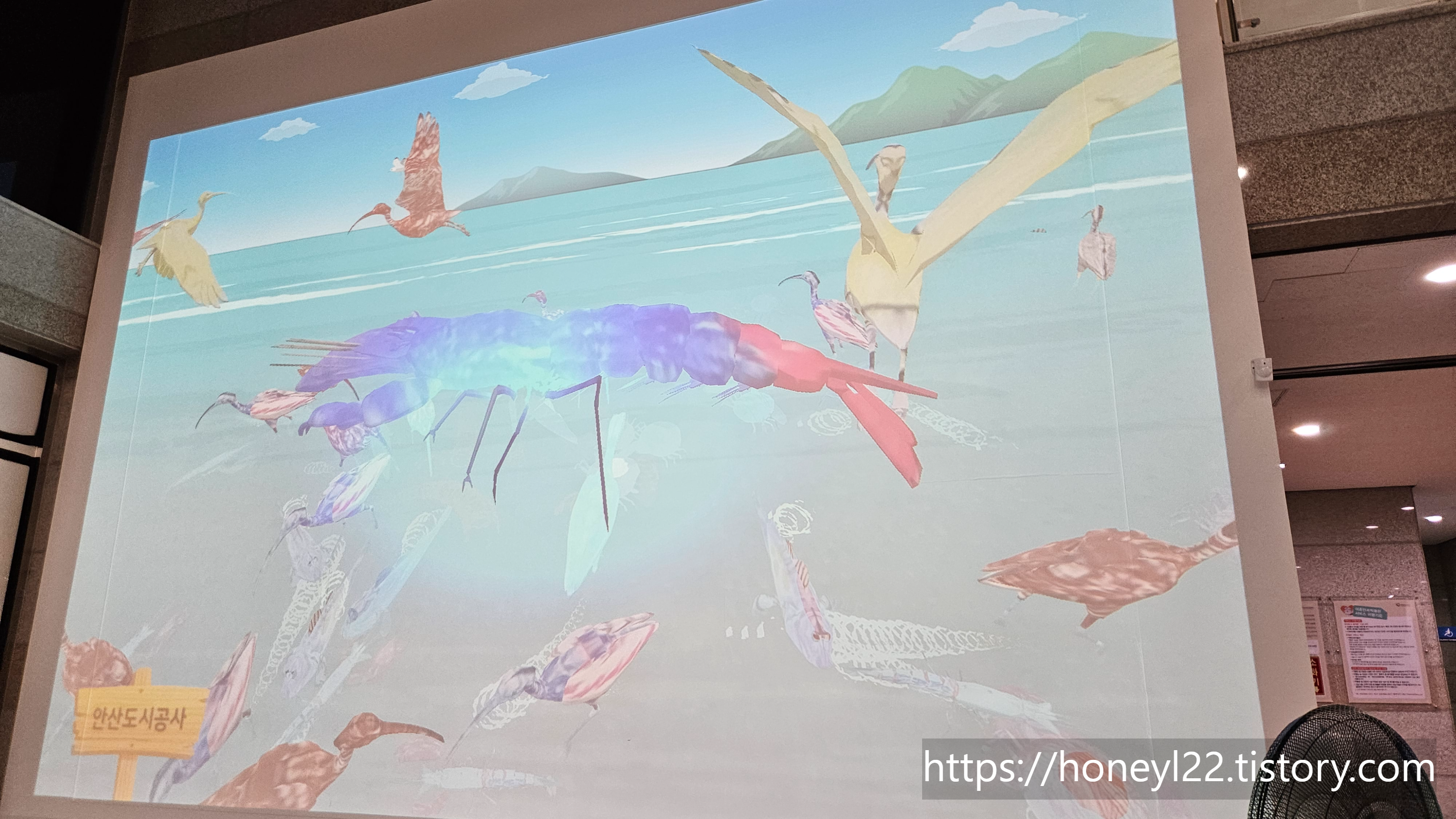 로비 안쪽에는 갯벌생물들을 색칠해서 대형 스크린 속 갯벌에 나타나게 해주는 체험공간이 있었습니다. 요즘 박물관에 가면 이 스캐너와 스크린 조합을 자주 볼 수 있어서 아이들은 익숙하게 원하는 갯벌 생물을 선택해 색칠하는 체험을 즐겼습니다.