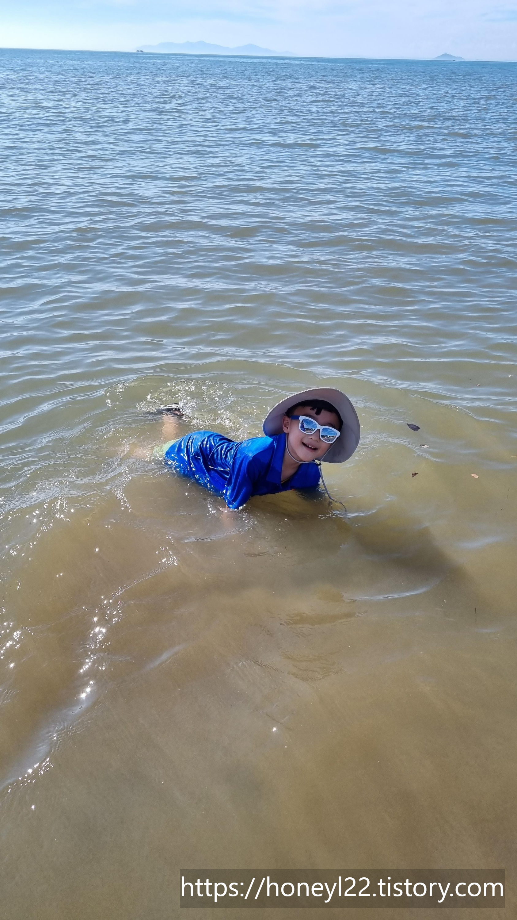 그래서 둘째가 첫날 방아머리 해수욕장에서 물에 풍덩 들어갔을 때 적잖이 당황했습니다.