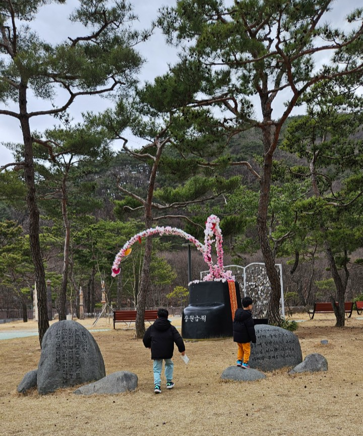 문경새재는 과거를 보러가던 선비들이 급제의 꿈을 안고 걸어가던 길이라는 걸 기념하듯 주차장에서 새재길로 진입하는 공원입구 쪽에 어사화가 흐드러지게 피어 꽂힌 어사모 모형이 떡하니 자리 잡고 있어요. 문경새재의 대표 포토존이 아닐까 싶습니다. 저와 아이들도 이곳에서 사진을 많이 찍었어요. 제가 갔던 날은 날이 흐려서 빗방울이 몇 방울 떨어지다가 그치다 한 날이라서 어사화의 화사함이 사진에 다 담기지는 않았지만 어사모를 배경으로 사진을 찍으면 어딘지 내 인생의 한구석이 조금 잘 풀릴 것 같은 기분이 들었습니다.
