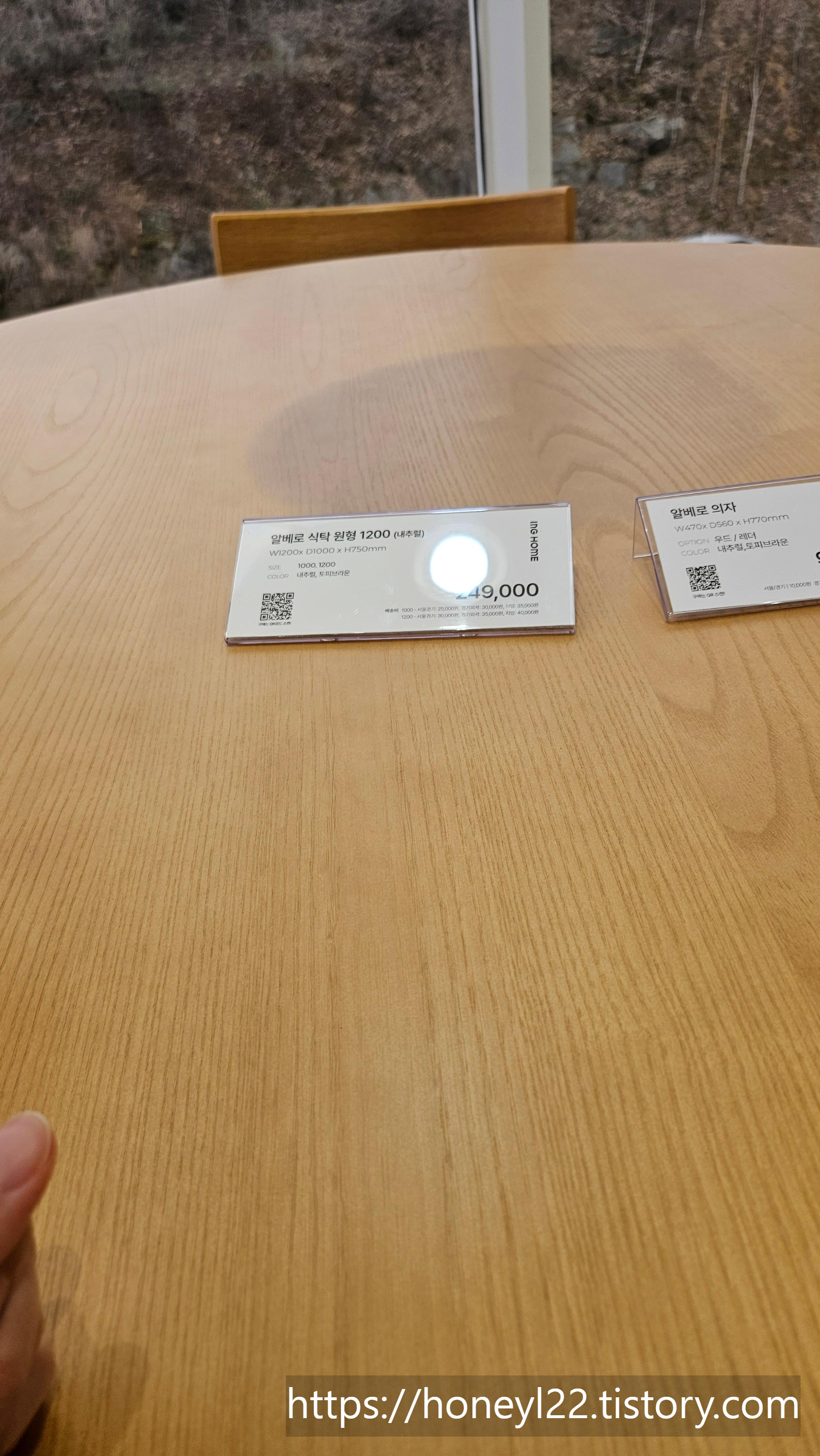 의자에 앉아보는데 생각했던 것보다 훨씬 착석감이 좋았습니다. 테이블 사이즈로 1000이냐 1200이냐 둘 중에 어떤 걸 할지 고민이었는데 함께 갔던 가족들이 큰 게 나은 것 같다며 하나같이 의견을 모아줘서 결정하는 어려움을 덜 수 있었습니다.