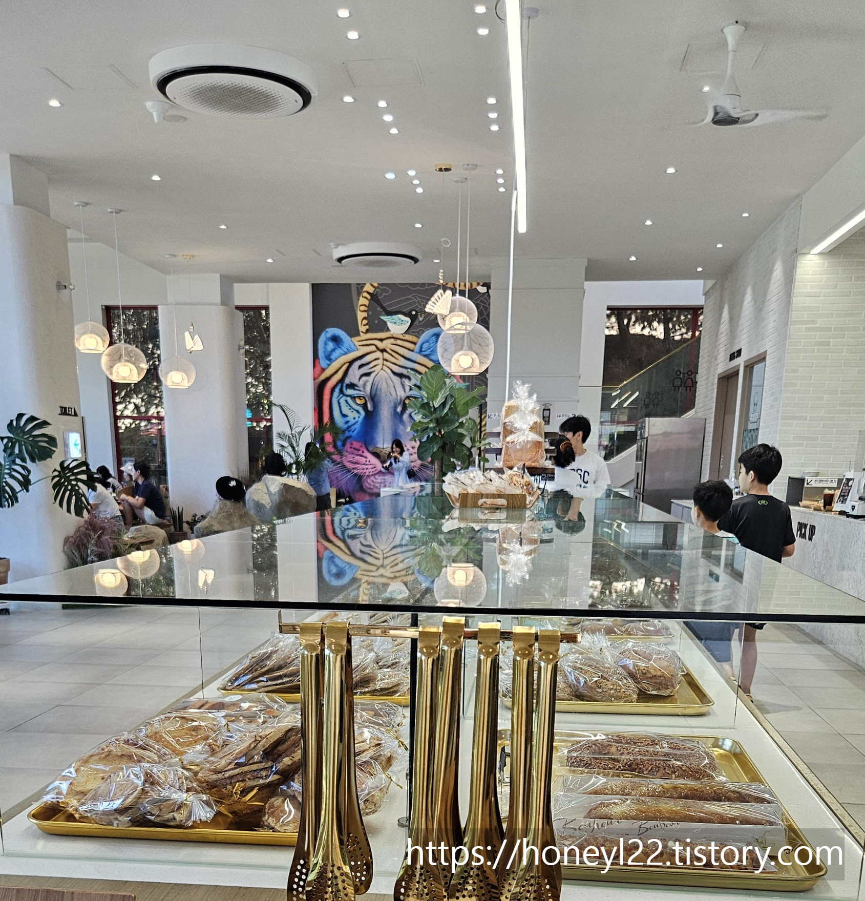 압도적인 크기의 알록달록한 호랑이 그림이 전면에서 시선을 빼앗은 안동 카페예요.