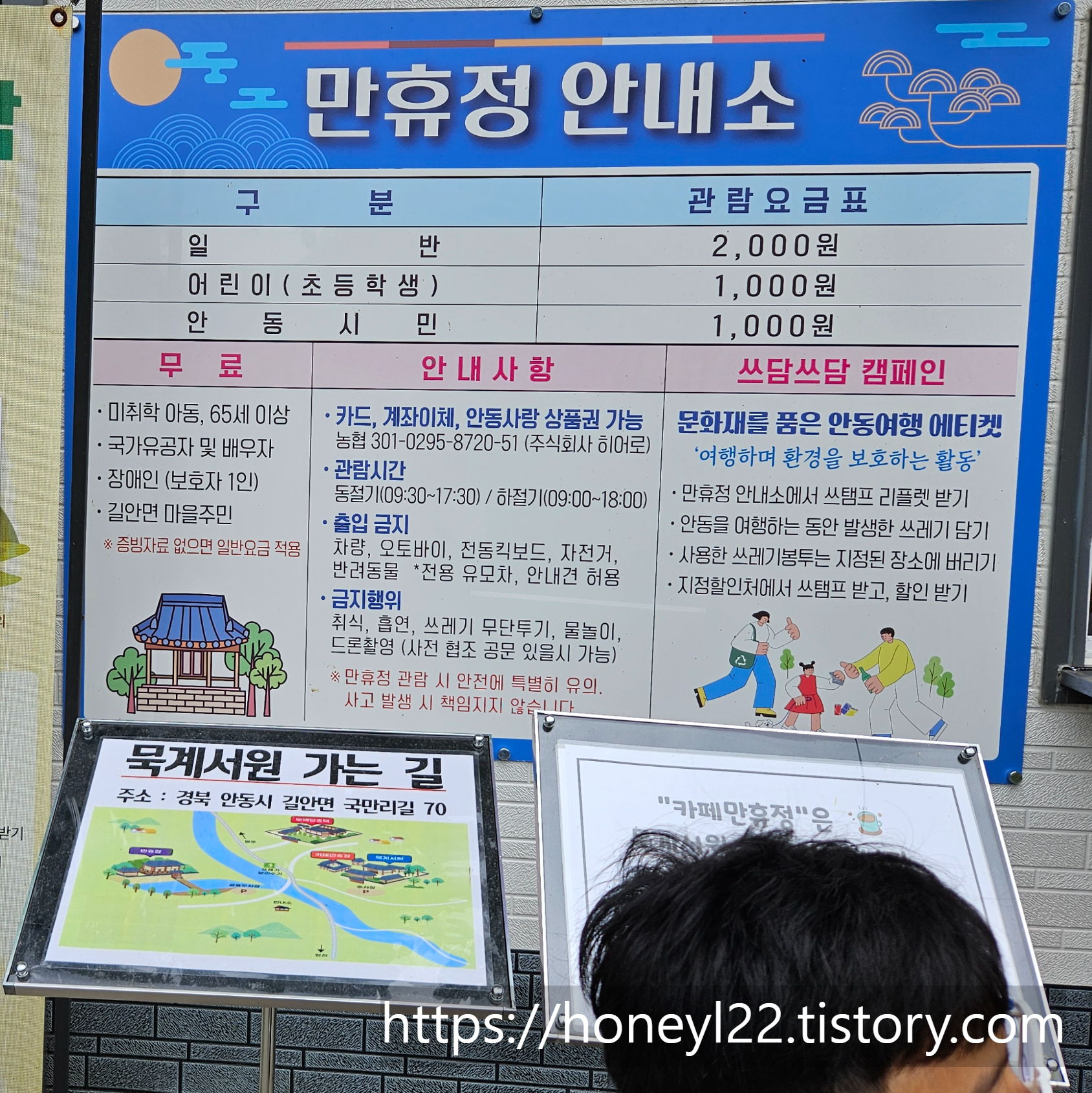 만휴정에는 입장료가 있어요. 성인 2천 원, 어린이 천 원의 금액이라 부담감은 전혀 없어요.