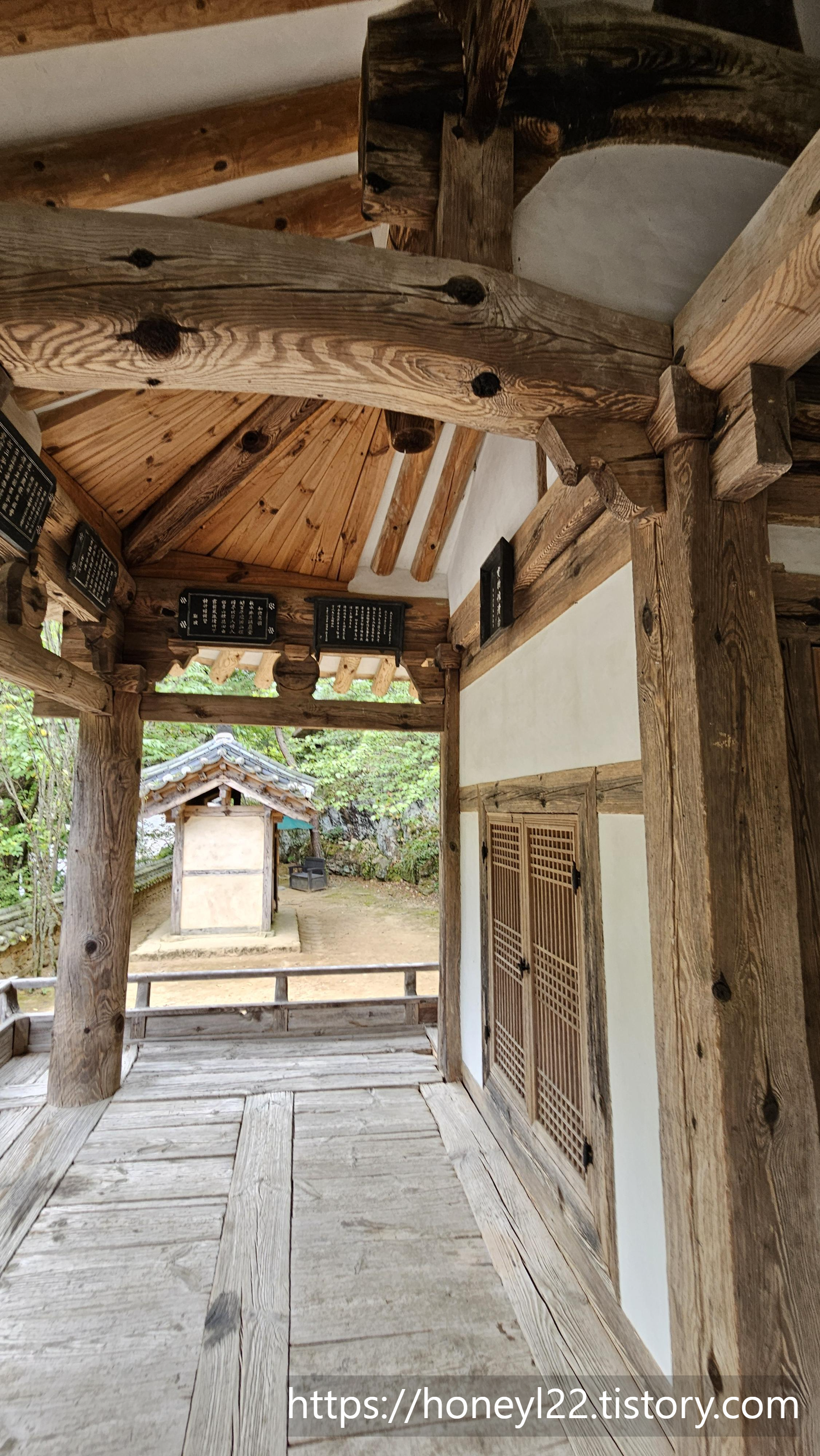 오래된 목재와 새로 개보수한 듯한 목재가 조화를 이루며 이 공간을 지탱하고 있는 걸 보니 할아버지와 손자가 손을 잡고 있는 것 같단 생각이 들었어요. 이 공간에 들어앉아 책을 읽고 벗과 함께 차를 마시며 보냈을 선비들의 모습이 절로 그려지는 공간이었습니다.