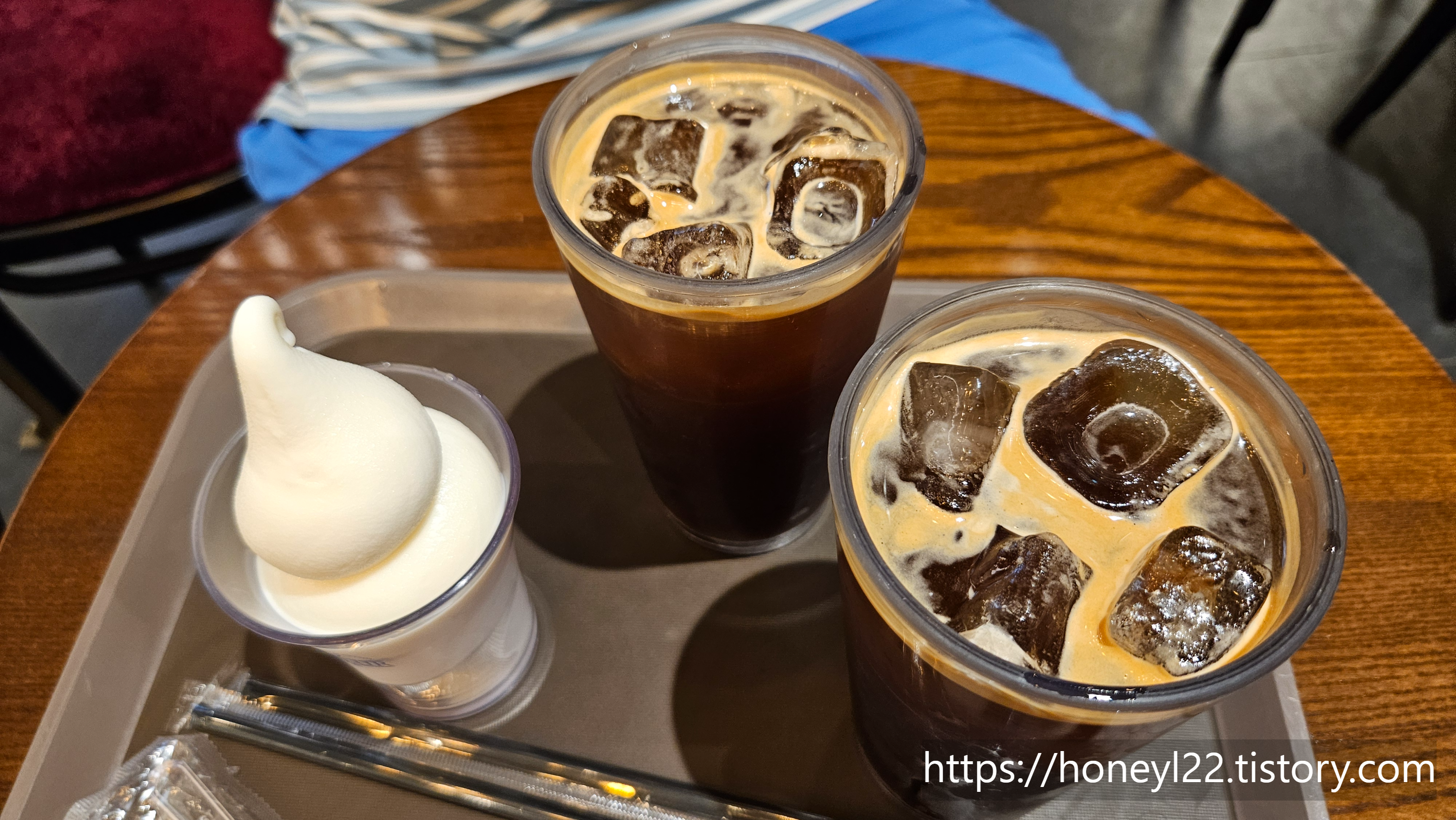 바깥에서는 얼음이 들어간 음료를 꺼리는 편인 저도 아이스 아메리카노를 마셨어요.